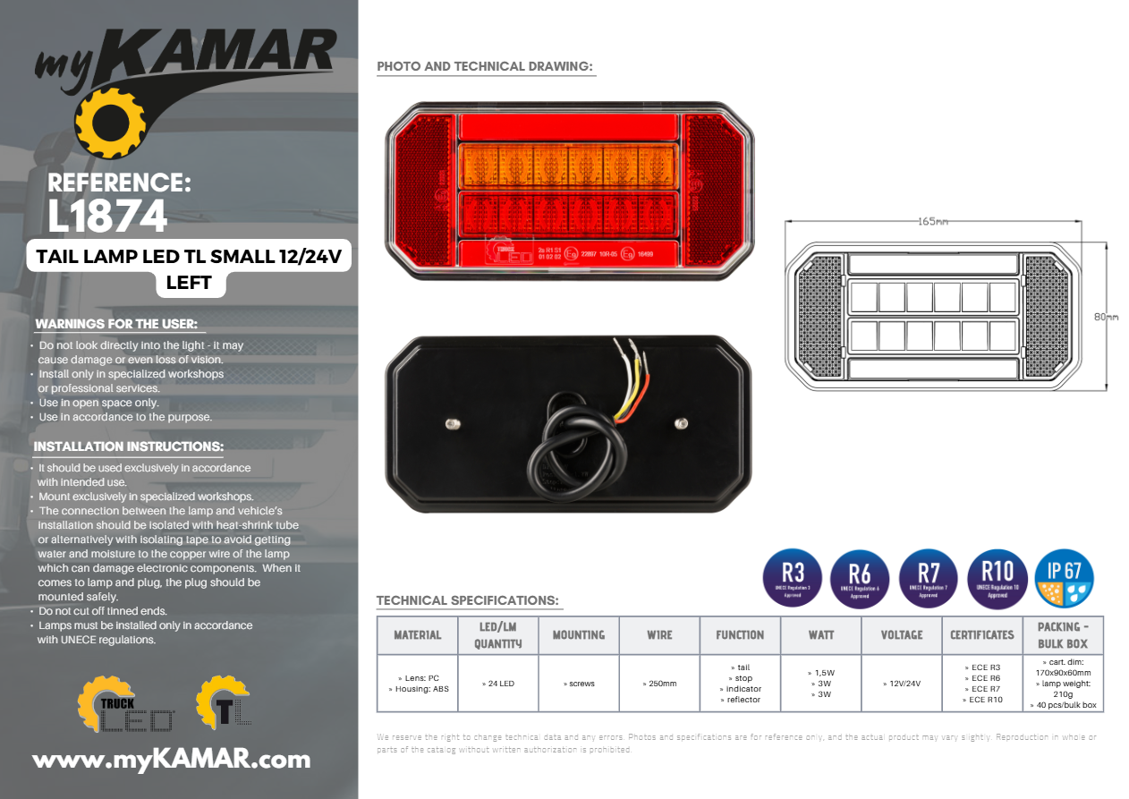 L1874 are caracteristici precum: coada, stop, indicator, reflector.