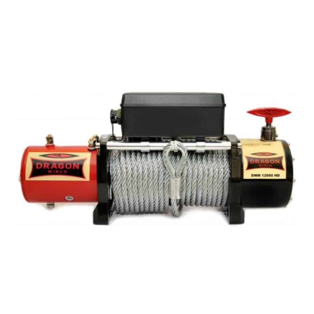 Troliu Dragon Winch 12000lbs (5443Kg) 12V cablu de otel 30m Raport 265:1